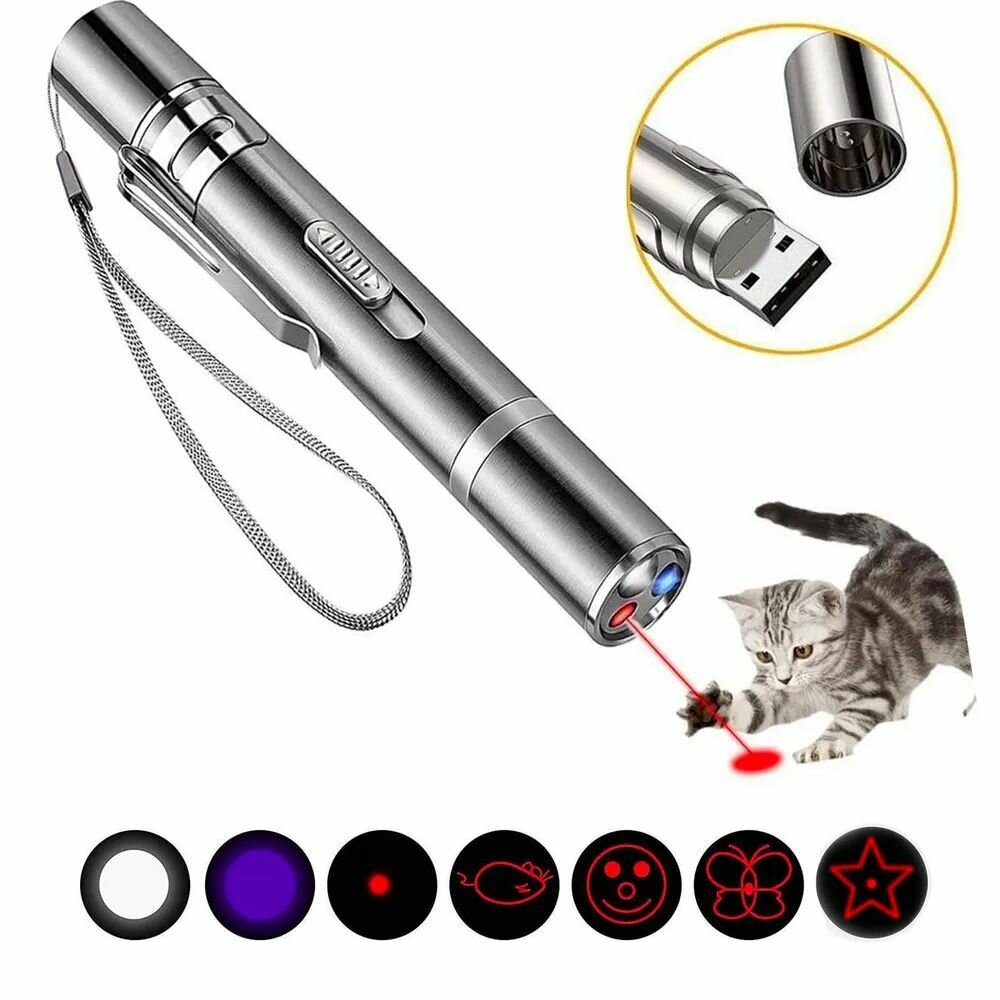 10 цен на 7в1 USB Перезаряжаемый LED светодиодный фонарик-лазер SolarLamp, лазерная указка с УФ детектором, заряжается от USB, дразнилка для питомцев.