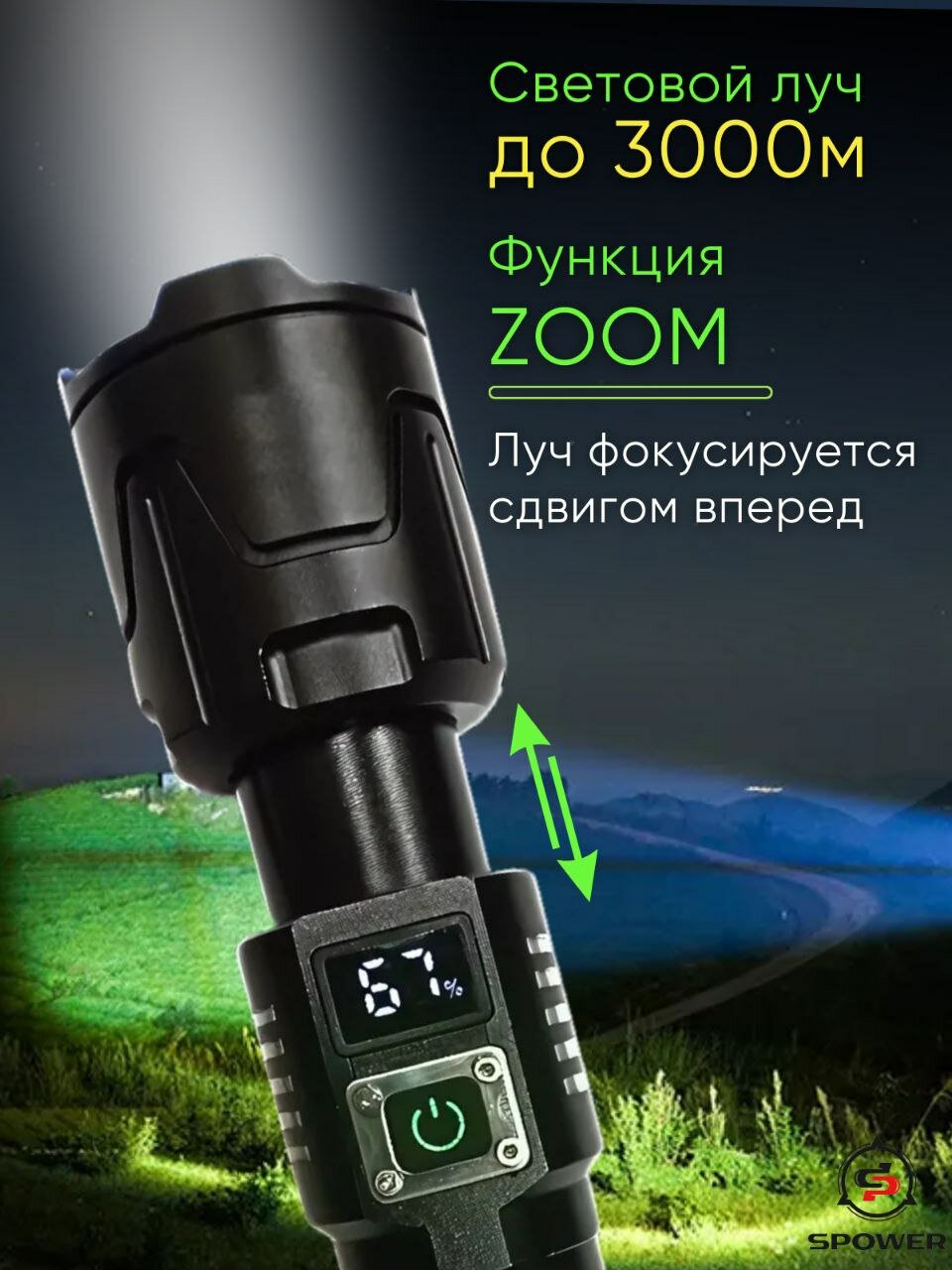 Мощный аккумуляторный фонарь LED 1000 Lumen информация: