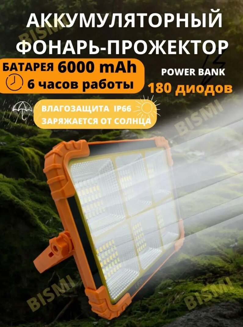 Отзывы на Фонарь кемпинговый / Фонарь прожектор мощный аккумуляторный светодиодный на солнечной батарее Power Bank с магнитными креплениями подвесной 4 режима