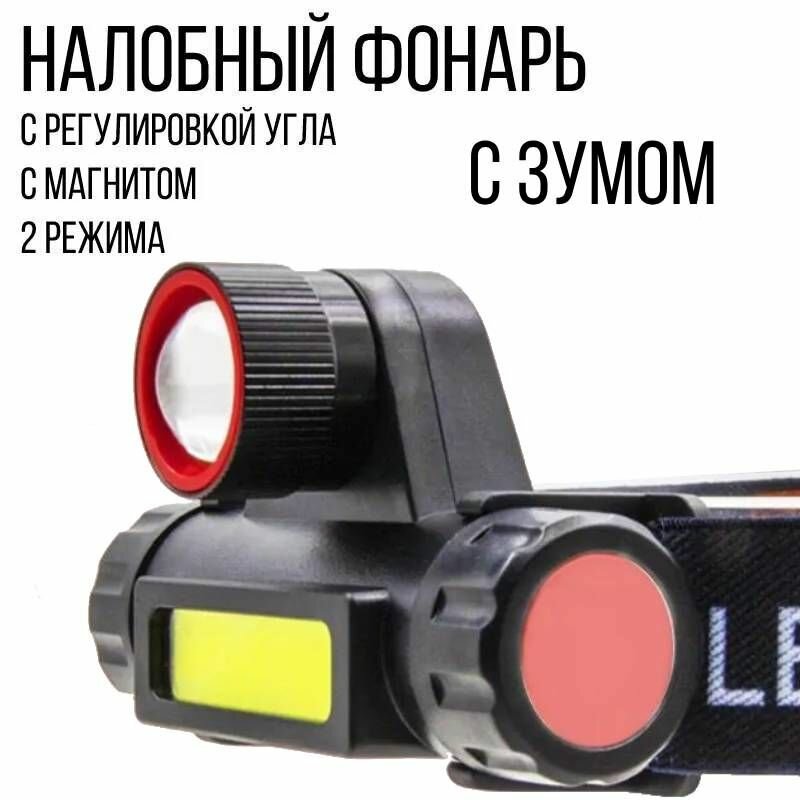 Налобный фонарь, магнитное крепление, черный, usb-зарядка, белый свет