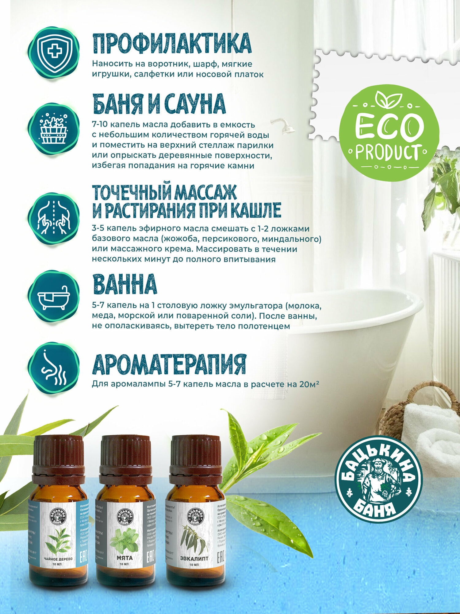 Эфирные масла натуральные для бани и сауны набор Эвкалипт 5шт. Бацькина баня. Ароматизатор для дома, арома масла 686 ₽