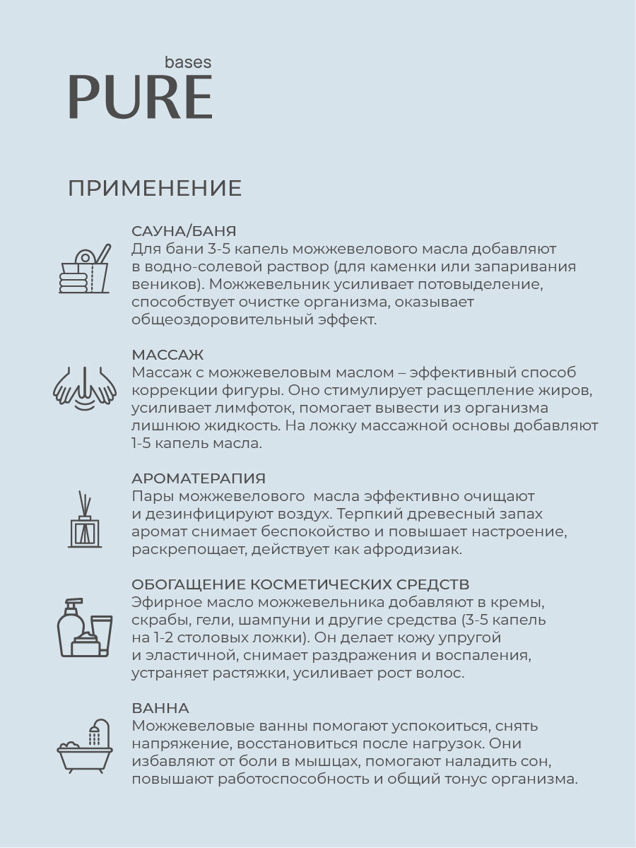 Натуральное 100% эфирное масло PURE BASES Можжевельник, 10 мл. информация: