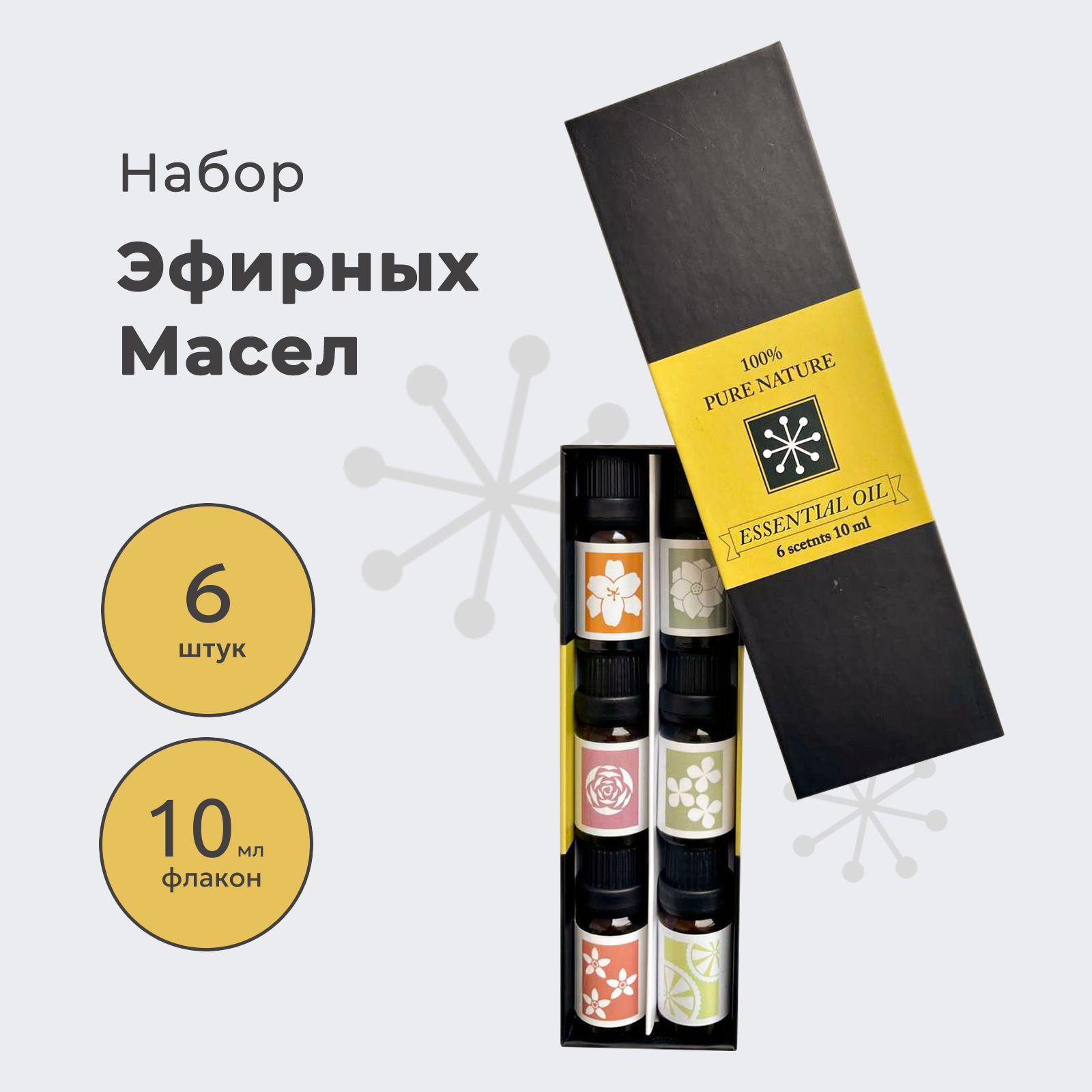 10 цен на Эфирное масло Essential Oil/ Натуральные эфирные масла / Набор эфирных масел 6 ароматов по 10 мл / 100% эфирные масла.