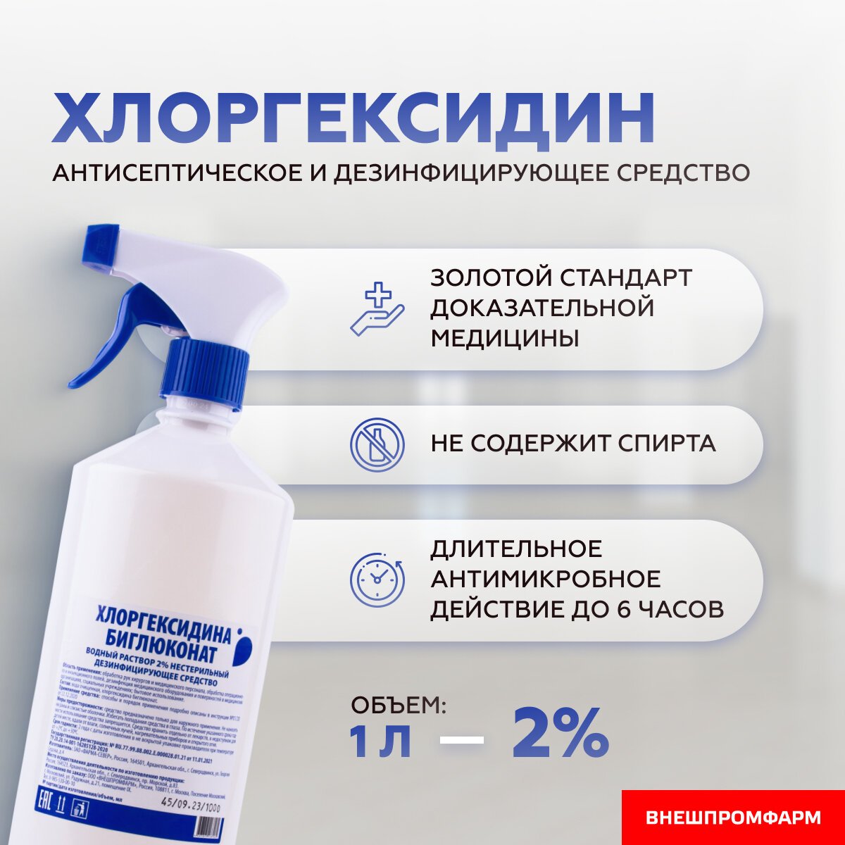 Хлоргексидин биглюконат 2% раствор для дезинфекции, антисептик с распылителем, 1000 мл информация: