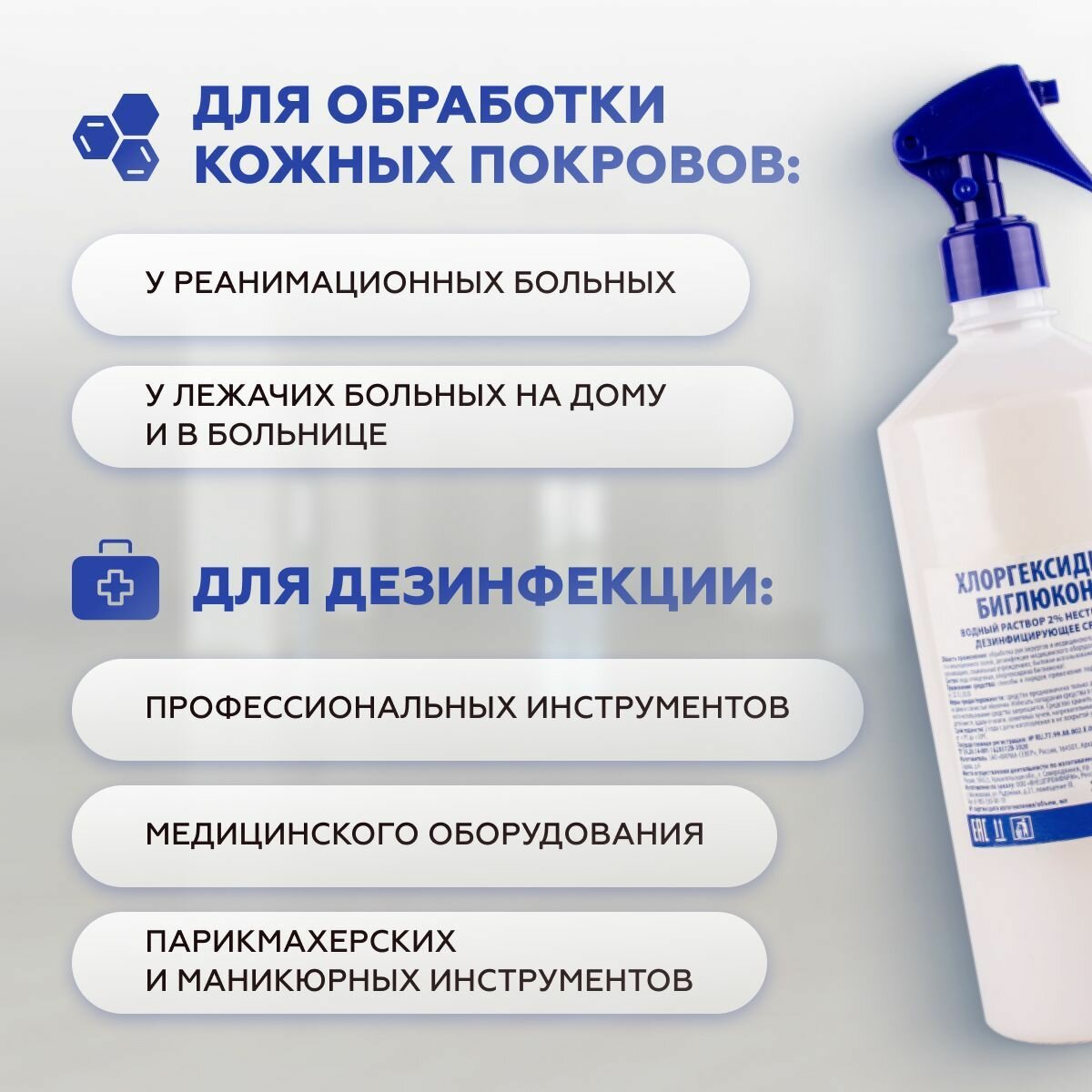 Хлоргексидин биглюконат 2% раствор для дезинфекции, антисептик с распылителем, 500 мл