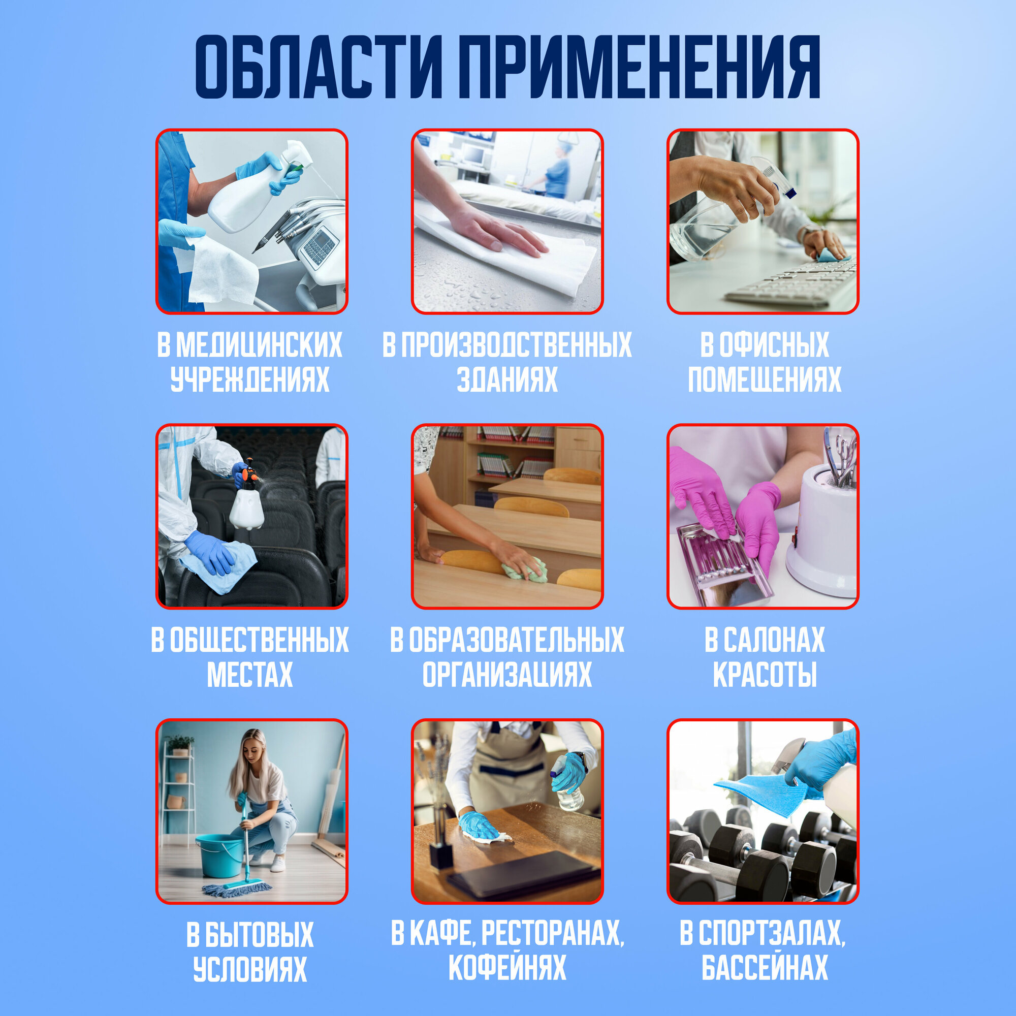 | Назначение | для дезинфекции помещений / для мытья детских игрушек / для мытья поверхностей и предметов / для обработки кожи / для очистки медицинских изделий / для приготовления дезинфицирующих средств / обработка поверхностей / универсальное |