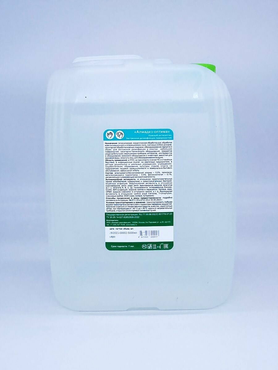 Антисептический кожный безспиртовой антисептик "Алмадез Оптима", 5 литров информация: