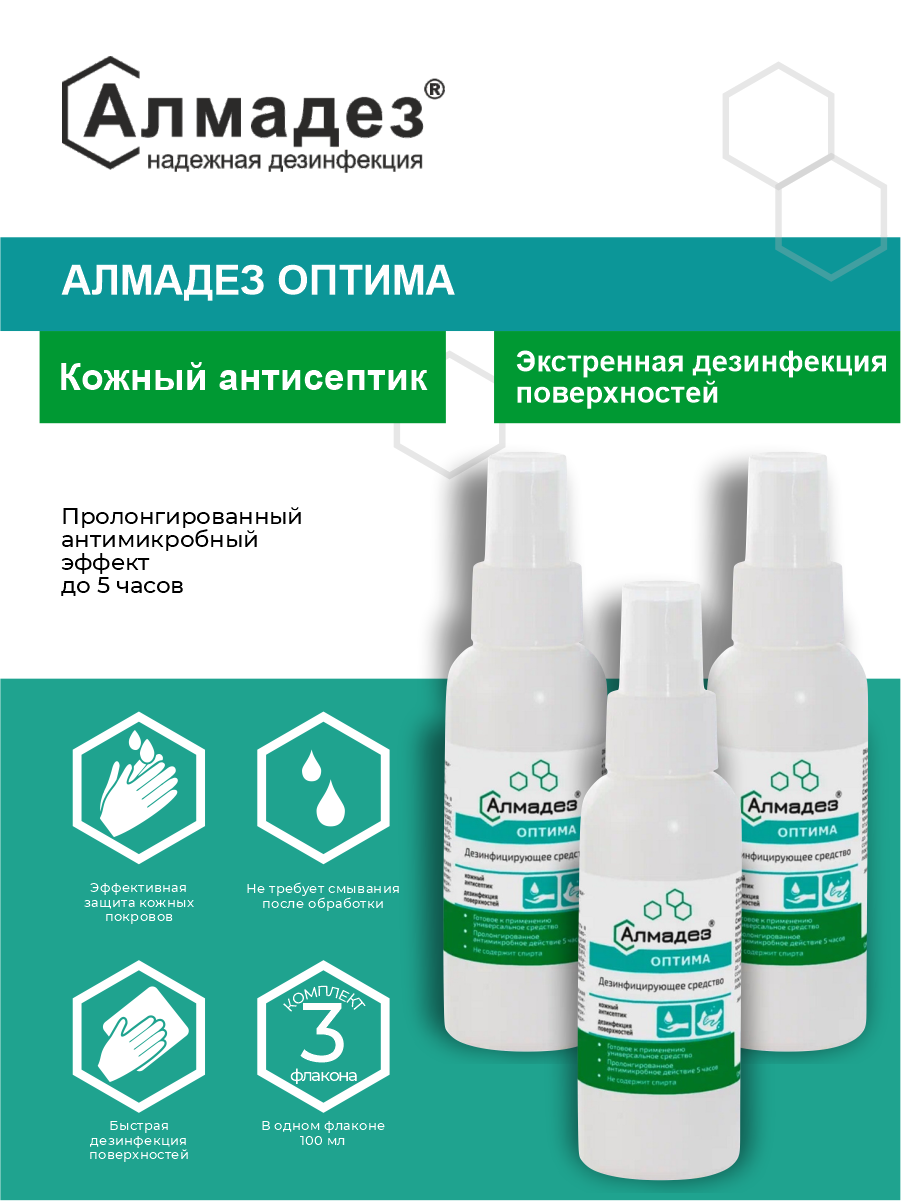 Антисептическое бесспиртовое средство Алмадез Оптима 100 мл. спрей х 3 шт. информация: