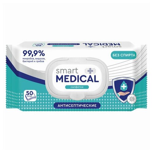 10 цен на Упаковка 6 шт. Антисептические салфетки влажные 50 штук SMART MEDICAL, без спирта, крышка-клапан, 72034