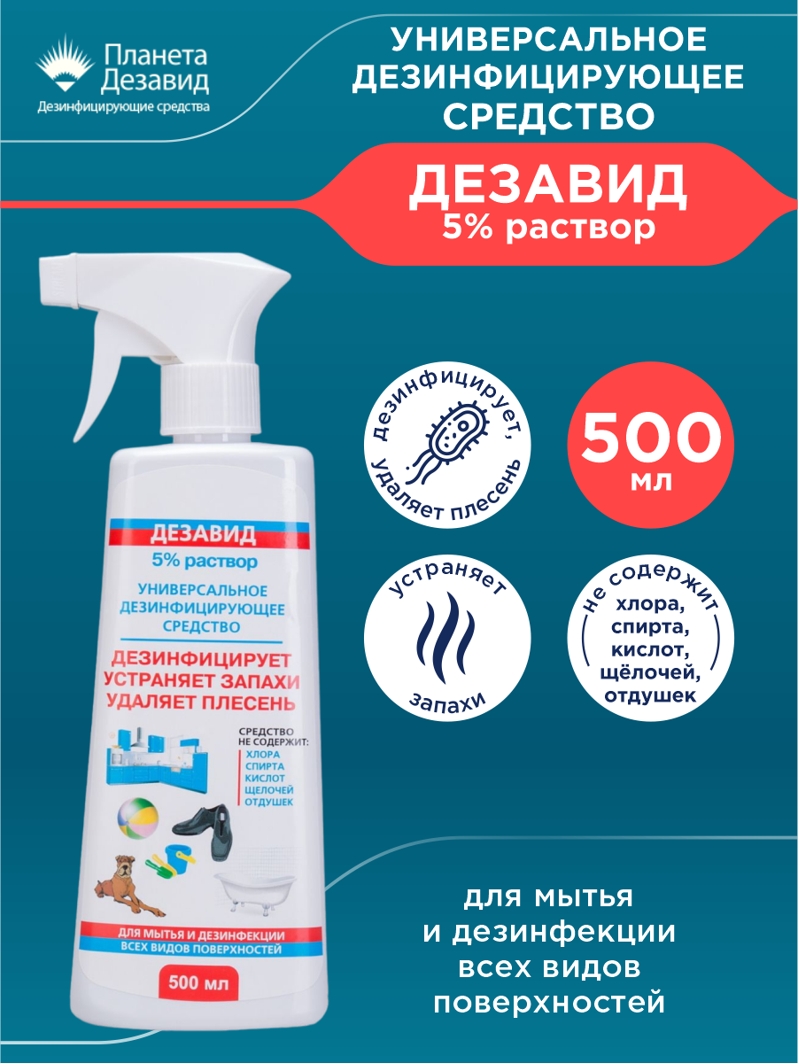 Универсальное дезинфицирующее средство Дезавид 5% раствор 500мл информация: