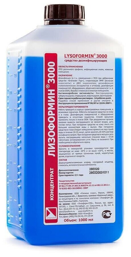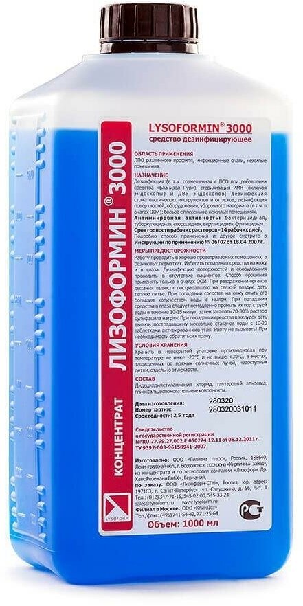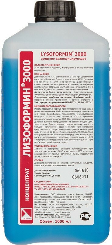Дезинфицирующее средство Лизоформин-3000 1,0 л (концентрат) информация: