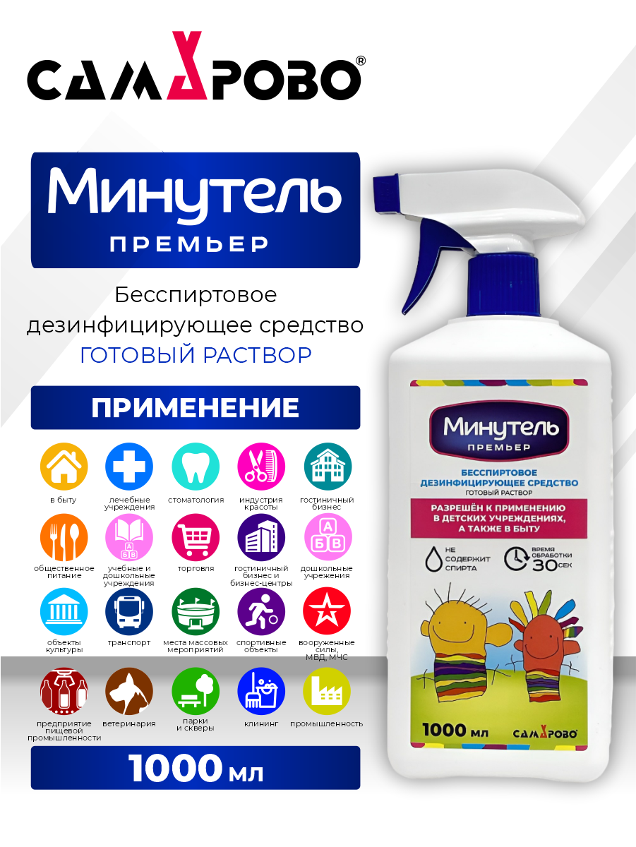 Дезинфицирующее безспиртовое средство Минутель Премьер 1 литр триггер информация: