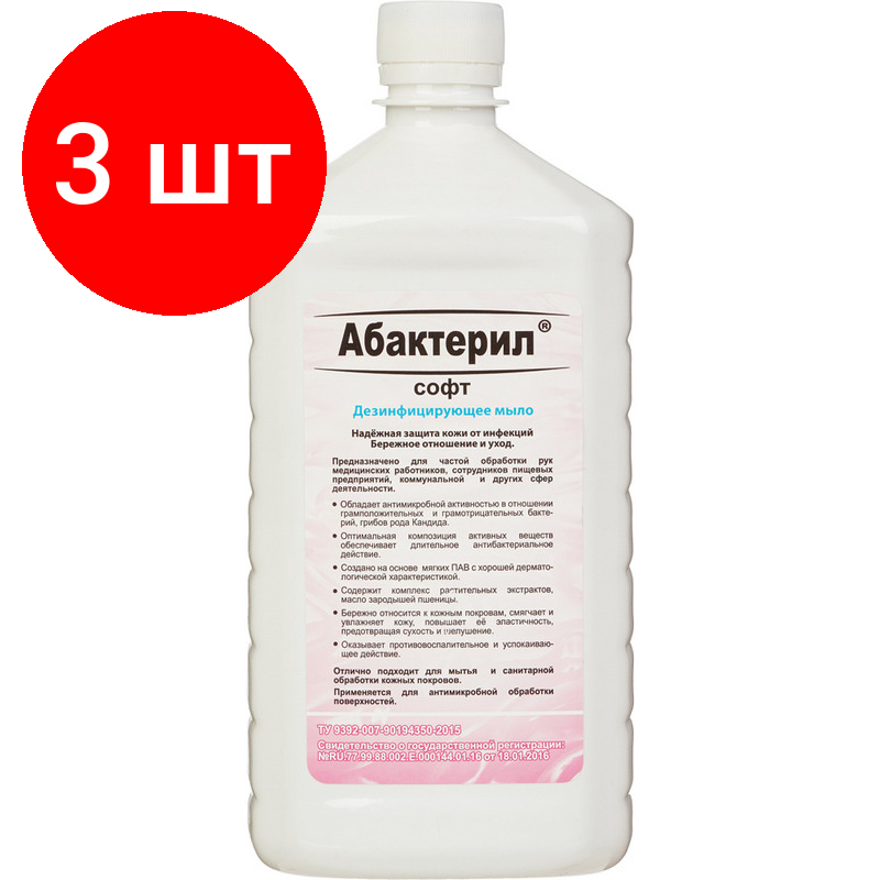 3 шт. Абактерил-Софт, дезинфицирующее мыло 500 мл. ГОСТ 12.1.007-76