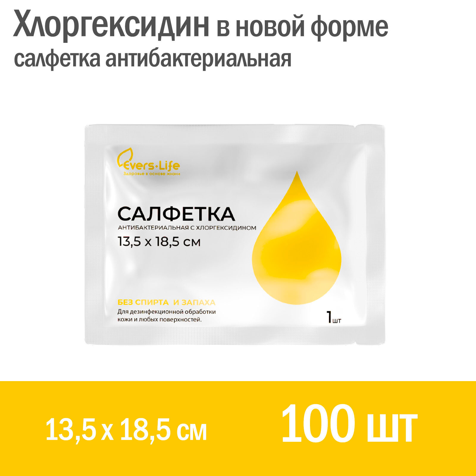 10 цен на Салфетка EversMed антибактериальная с хлоргексидином 13.5х18.5см, 100шт, 908614