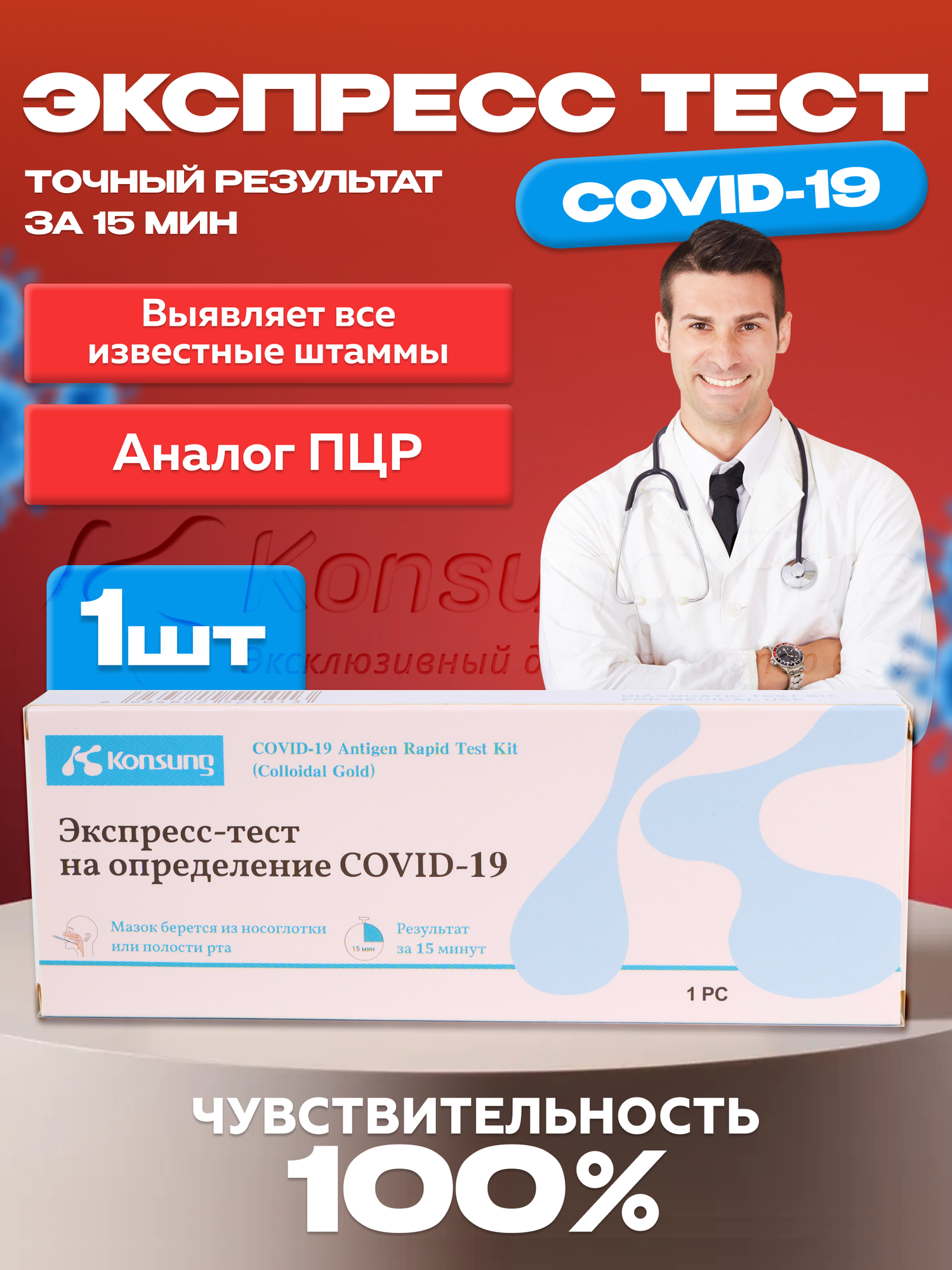 Konsung Beauty Набор реагентов для иммунохр. выявл. антигена SARS-CoV-2 COVID-19 с коллоид. золотом экспресс-тест