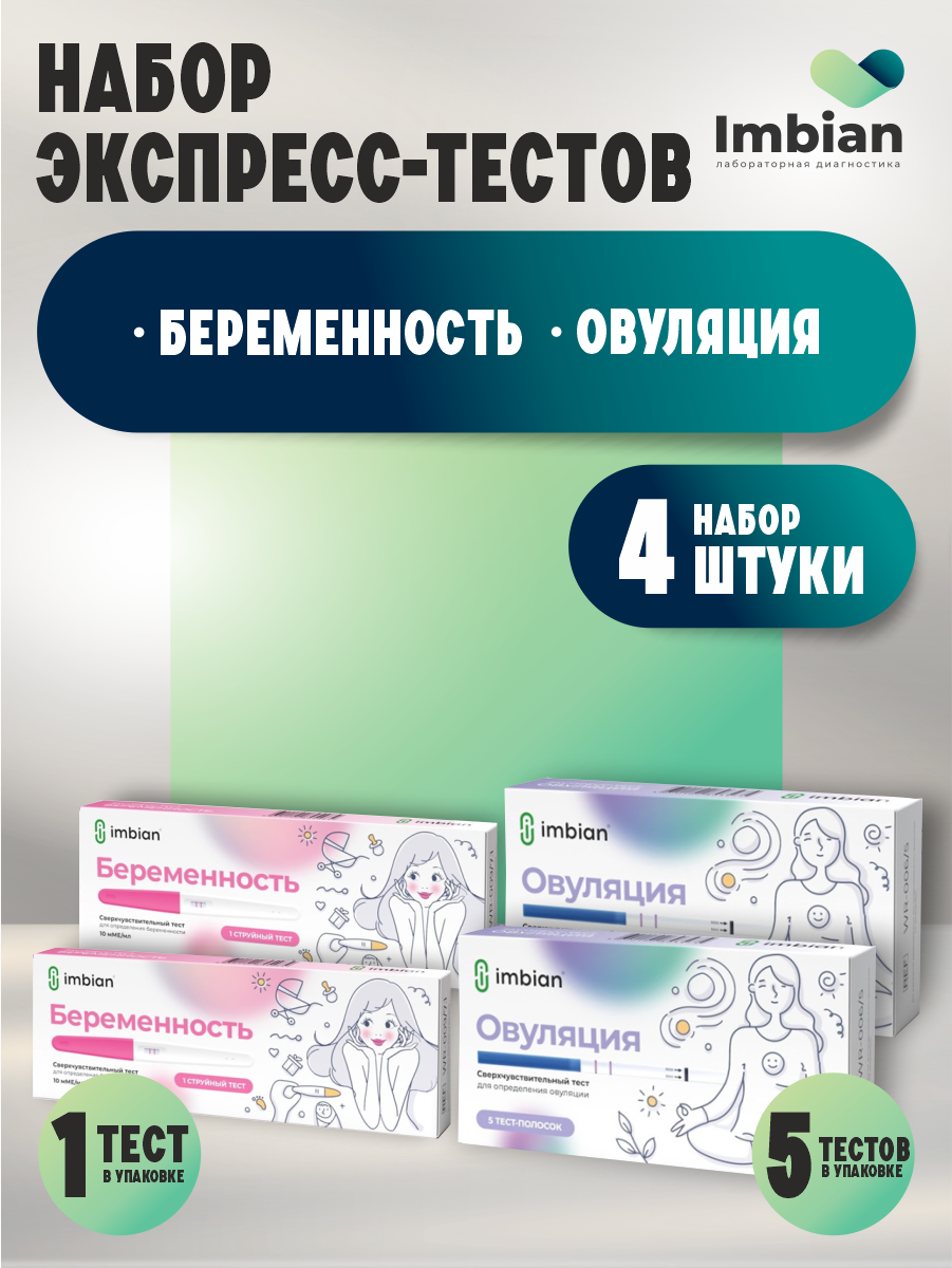 Набор Экспресс-тестов Имбиан на беременность струйный 10мМЕ/мл. + овуляцию по 2 шт. информация: