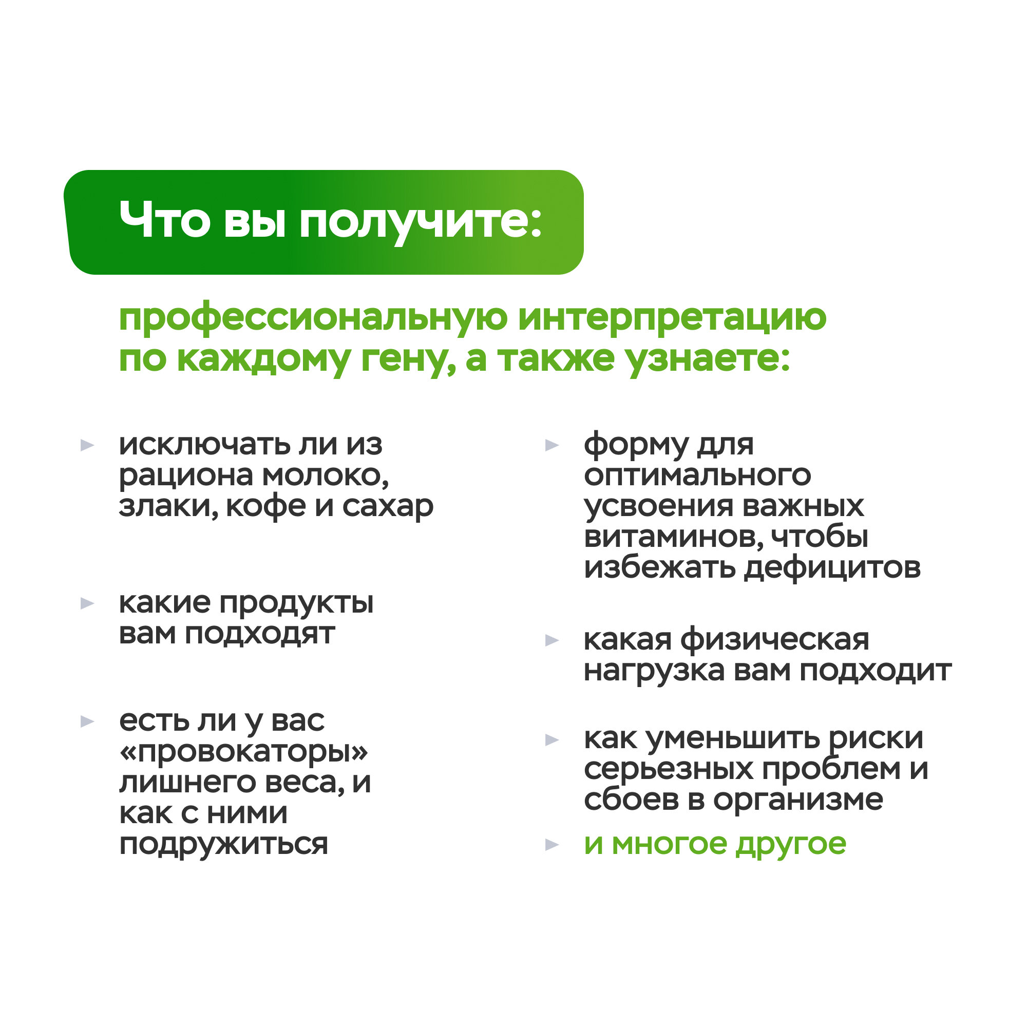 ДНК-тест MyGenetics MyExpert. Самый полный генетический отчет о здоровье информация: