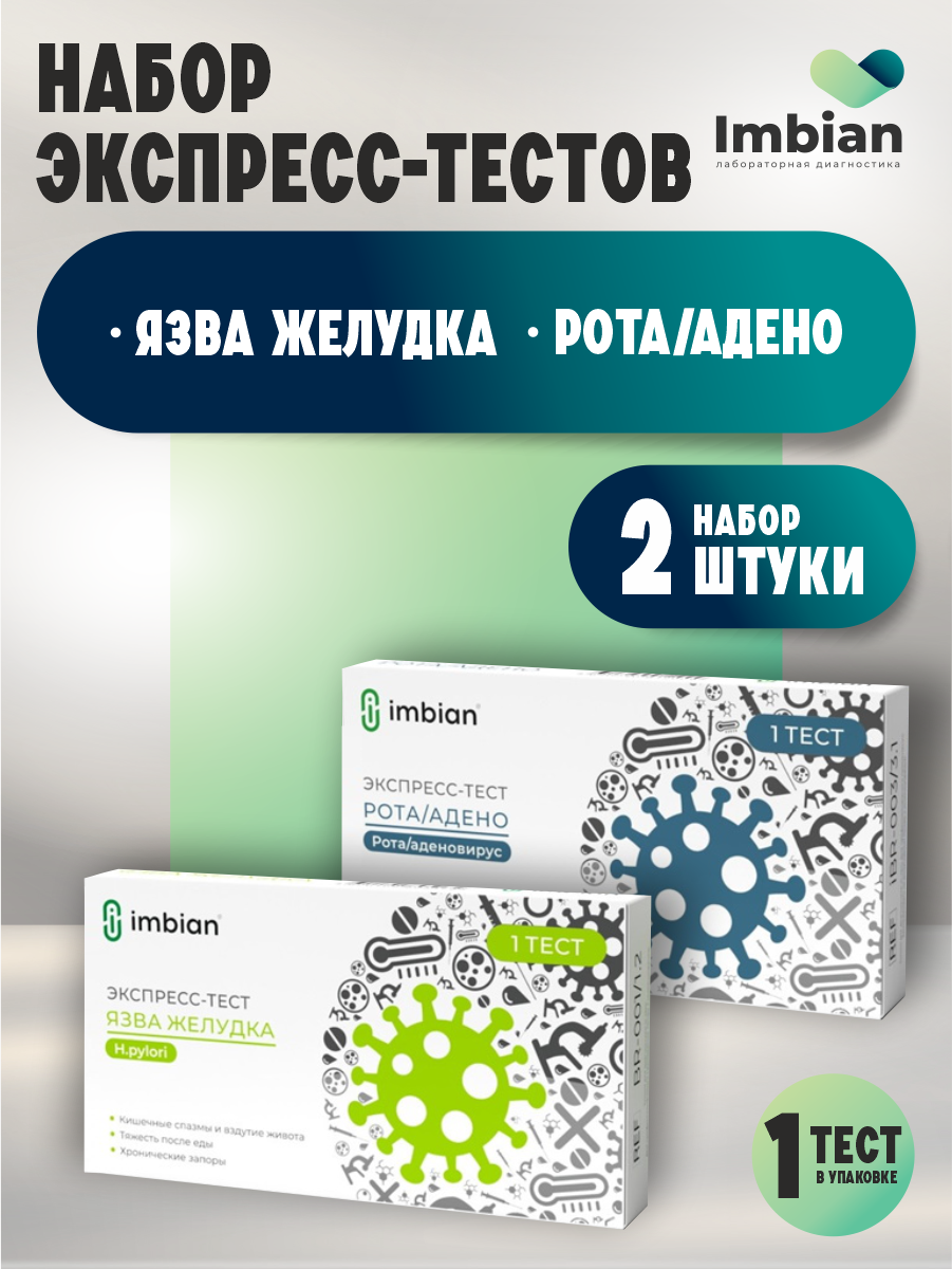 10 цен на Набор Экспресс-тестов Имбиан на выявление язвы желудка + на определение ротавируса и аденовируса