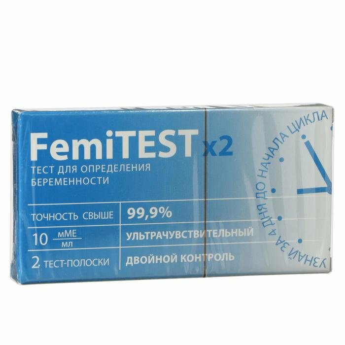 Тест-полоска FEMiTEST для определения беременности, суперчувствительный, 2 шт