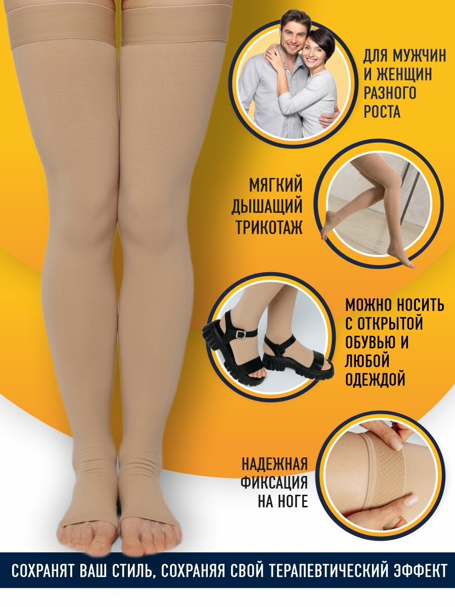 Компрессионные чулки 2 класса бежевые с открытым носком, размер M (3) информация: