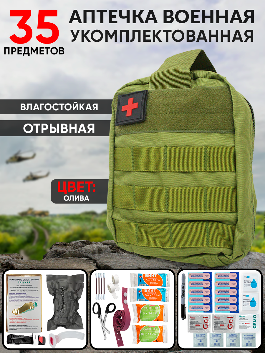10 цен на Аптечка тактическая укомплектованная 35шт олива