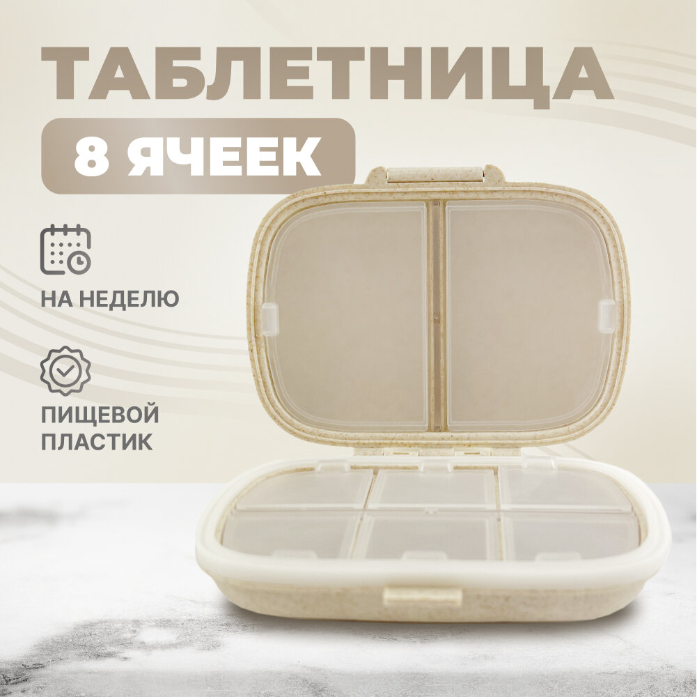 10 цен на Таблетница на неделю, контейнер для таблеток, 8 секций (бежевый)