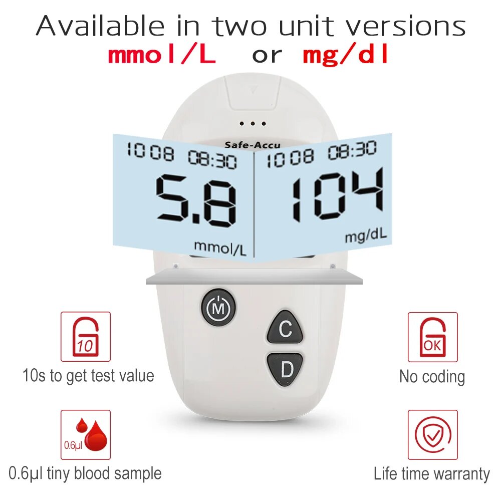 10 цен на Глюкометр Safe-Accu CE для измерения уровня глюкозы в крови