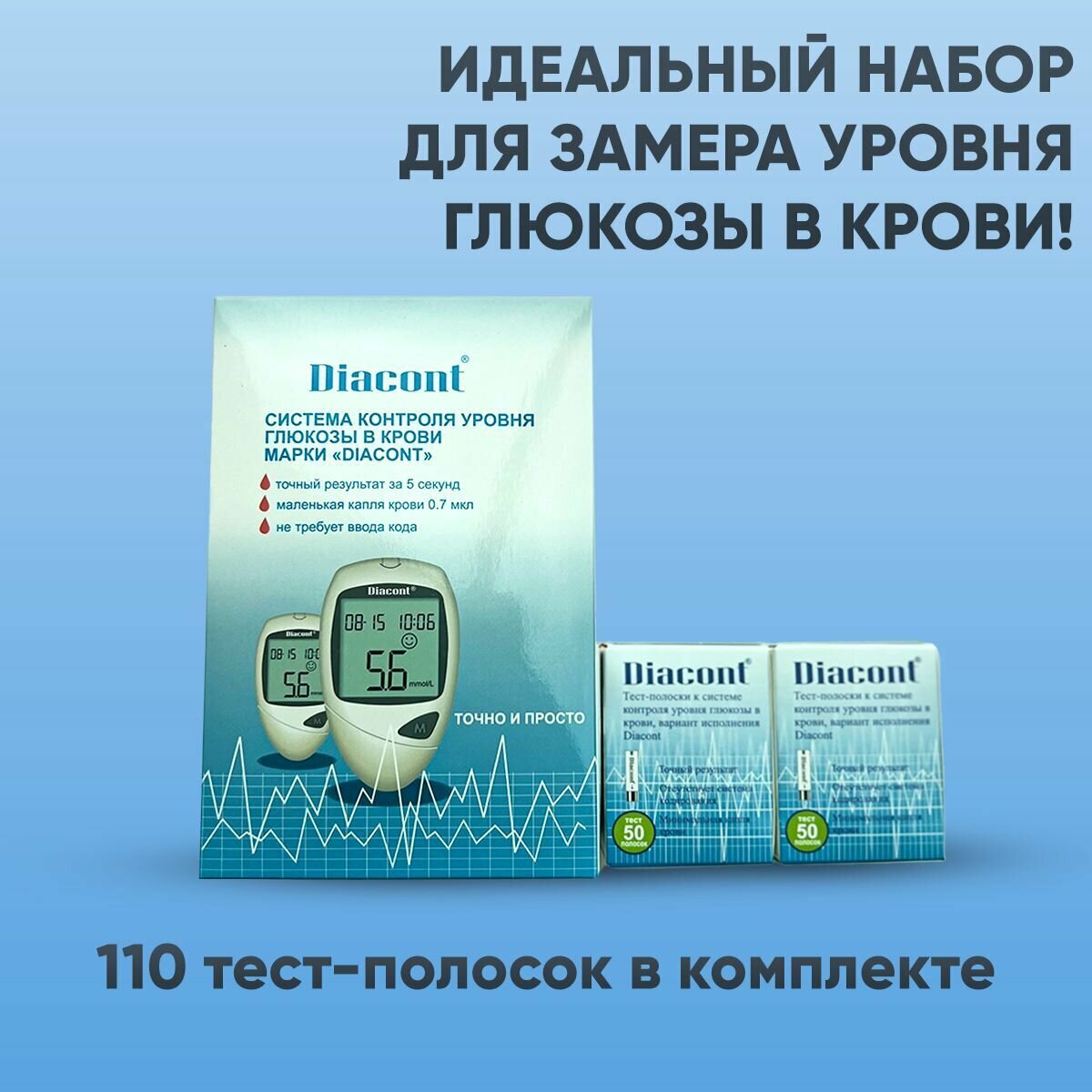 10 цен на Глюкометр Diacont Standart (Диаконт Стандарт) и тест-полоски (110 шт.), измеритель сахара в крови, мониторинг глюкозы при диабете