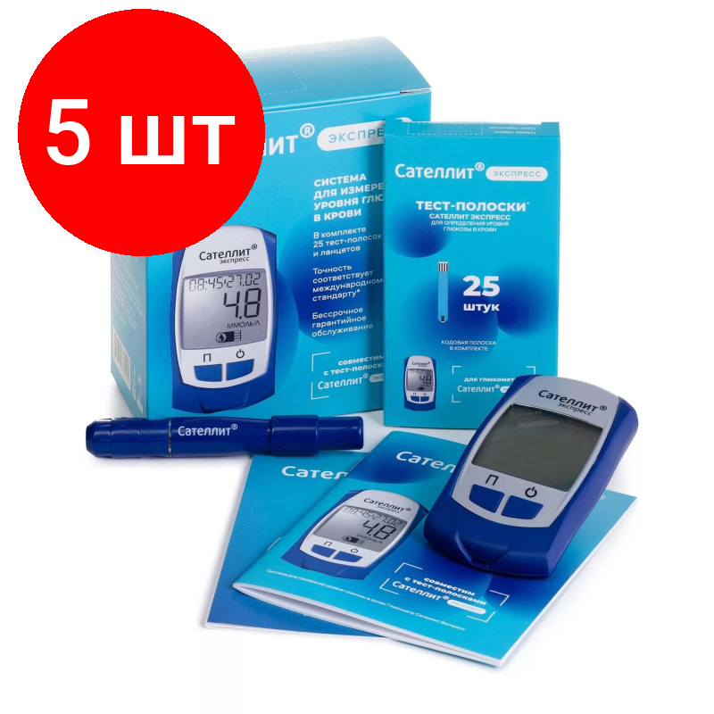 Комплект 5 штук, Глюкометр ПКГ-03 Сателлит Экспресс информация: