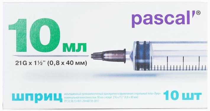 Шприц 3-х компонентный с иглой Pascal'/Паскаль 0,8x40мм 10мл 10шт