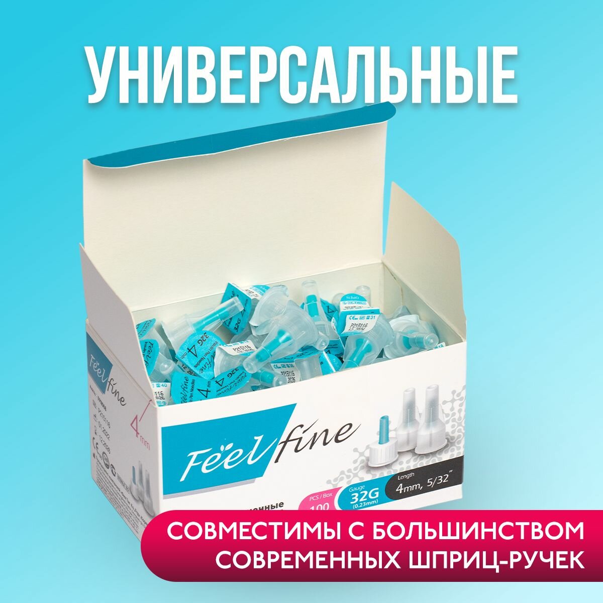 Иглы для шприц-ручек FeelFine (ФилФайн) длина 4 мм (32G), 100 штук информация:
