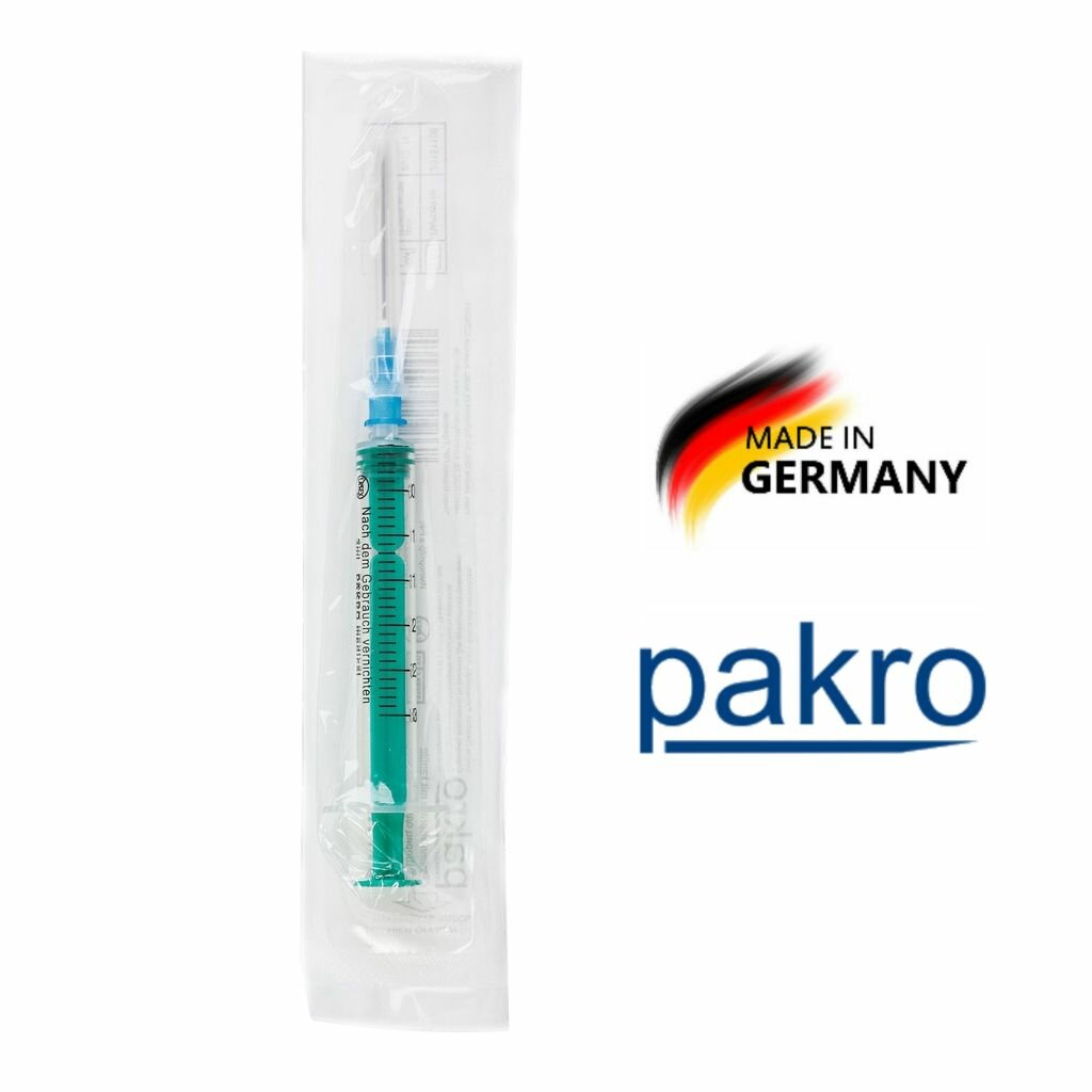 Шприц Pakro 3 мл №100, игла 0,6х32 медицинский одноразовый трехкомпонентный, Германия информация: