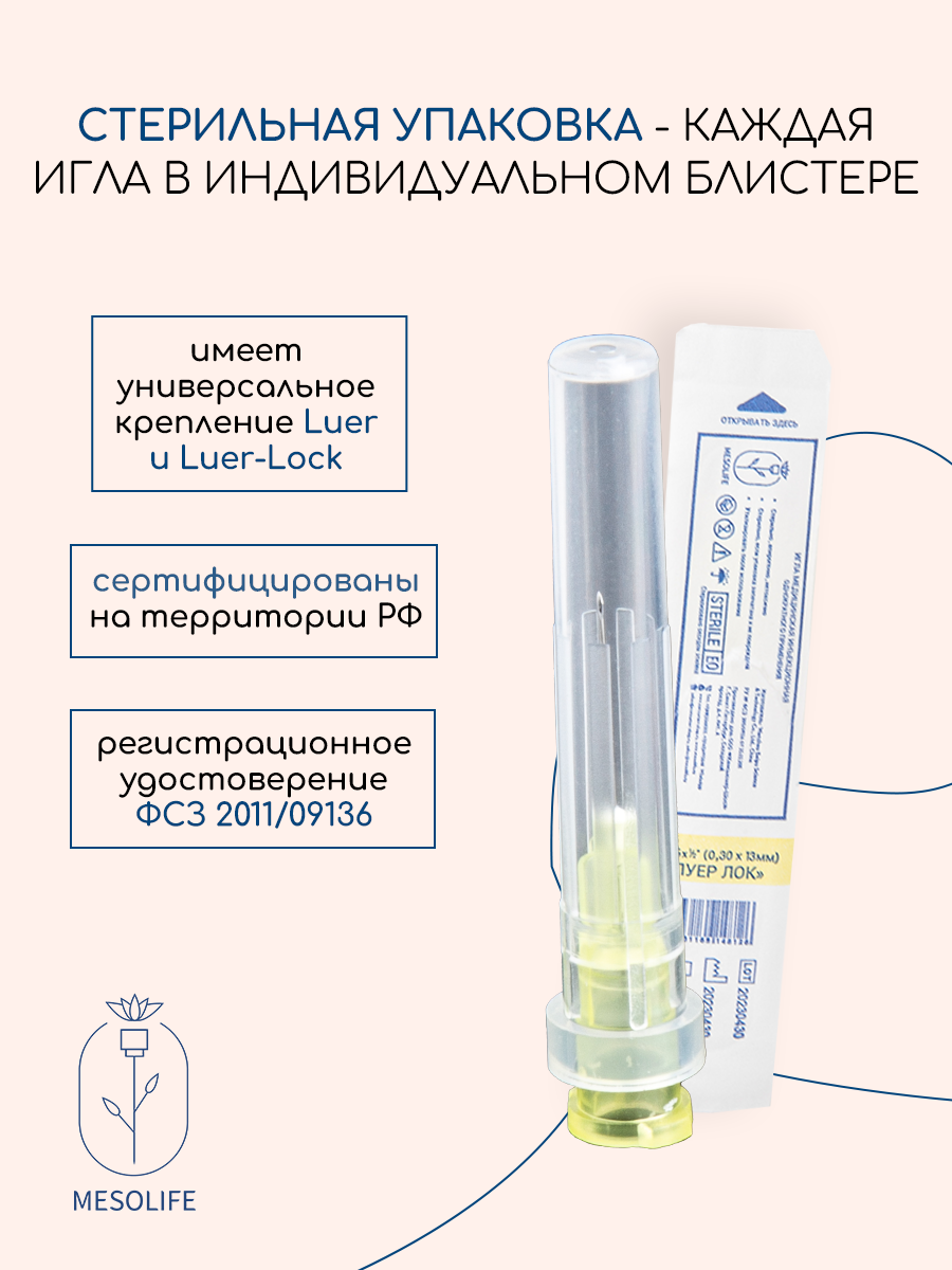 Игла для мезотерапии MESOLIFE 30G 0,3*13мм 100шт информация: