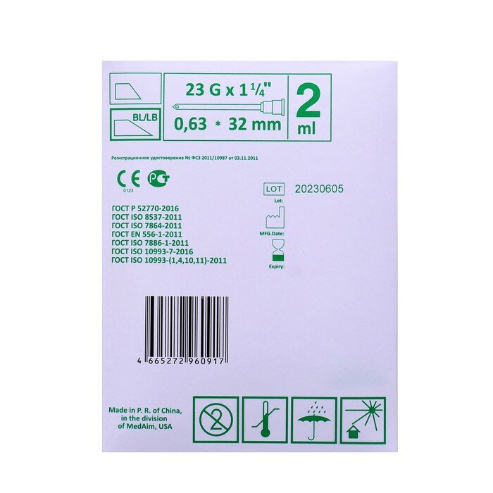 Шприц инъекционный однократного применения 3-х компонентный MedAim Luer Lock 2 мл с иглой 0,63х32 мм (23Gх1 1/4") Луер Лок MEDAIM, 100 шт/уп