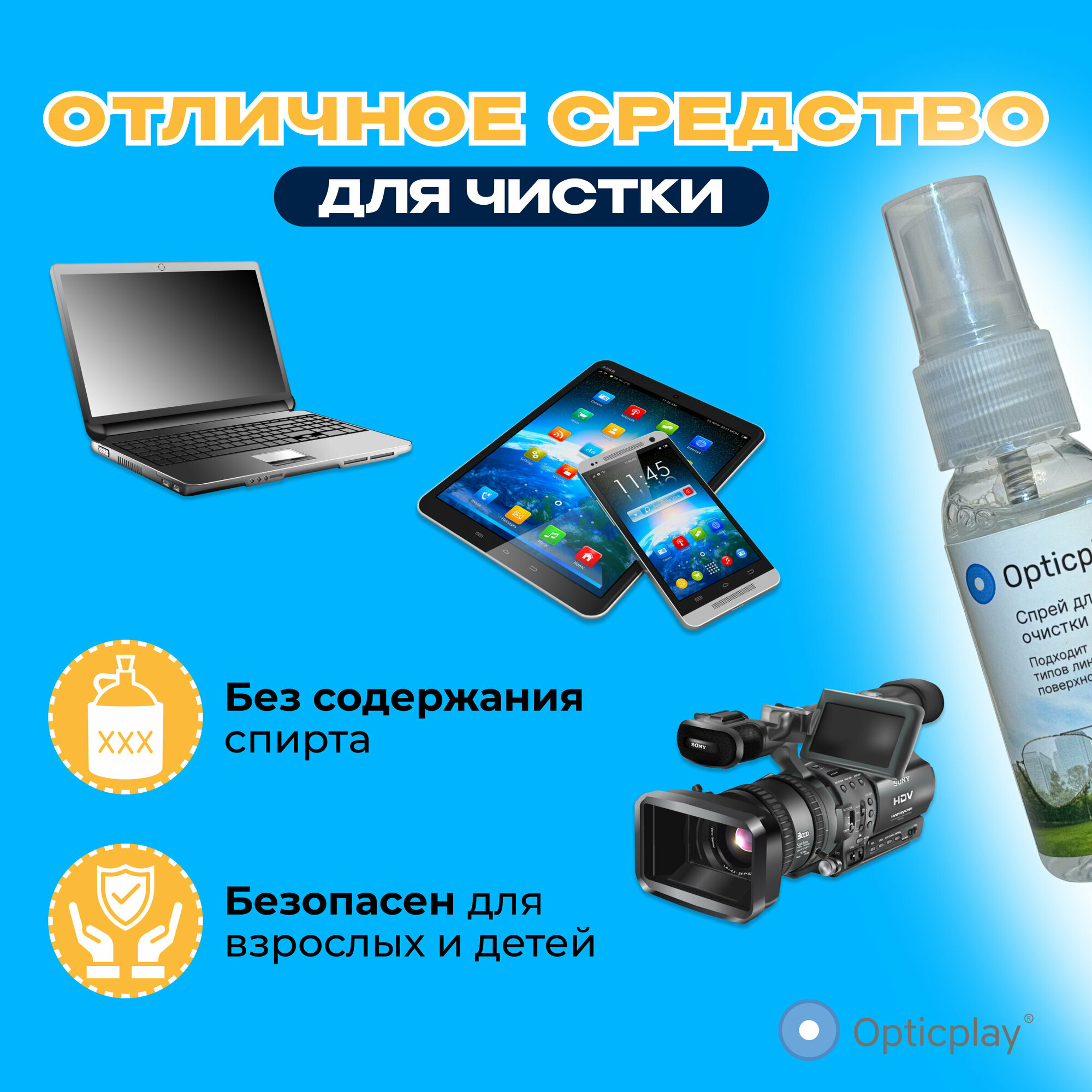 Спрей для ухода за очками Оптикплей + салфетка из микрофибры + футляр информация: