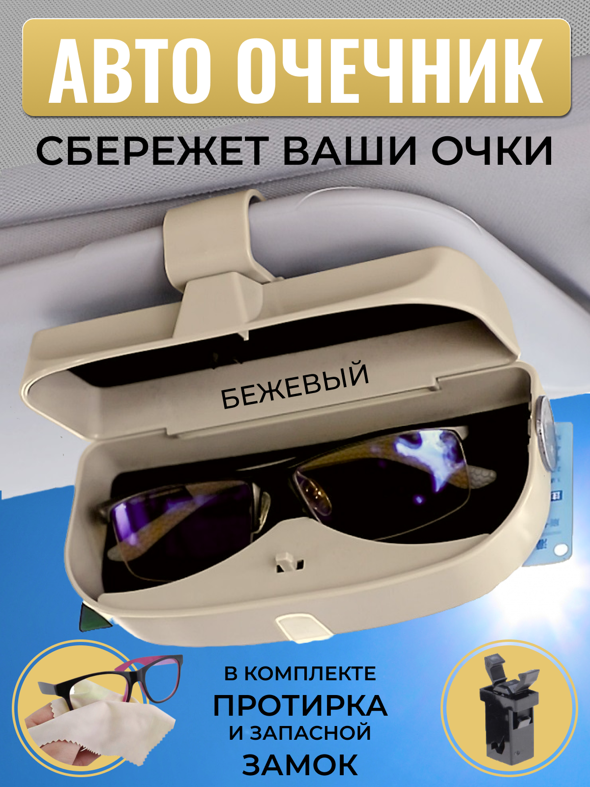 Отзывы на Очечник автомобильный, держатель очков на солнцезащитный козырек, жесткий чехол футляр для очков, пластиковый, бежевый