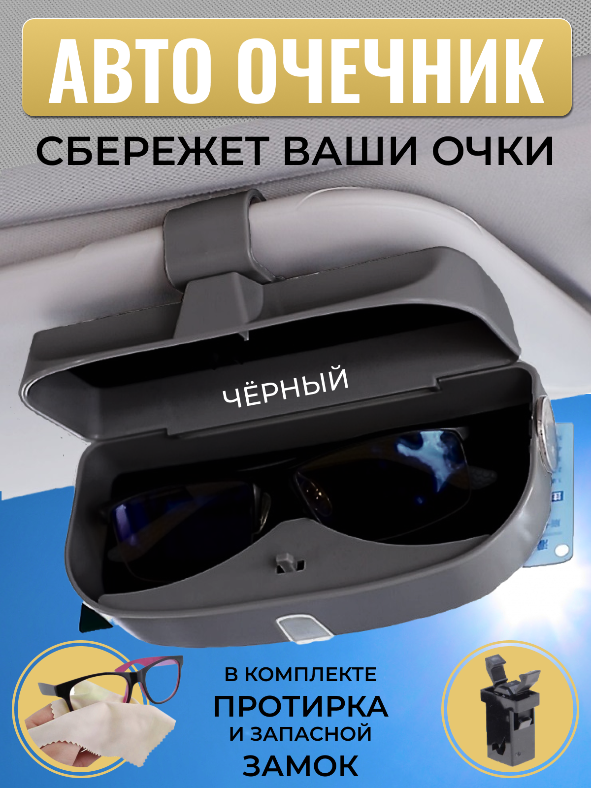 Отзывы на Очечник автомобильный, держатель очков на солнцезащитный козырек, жесткий чехол футляр для очков, пластиковый, черный