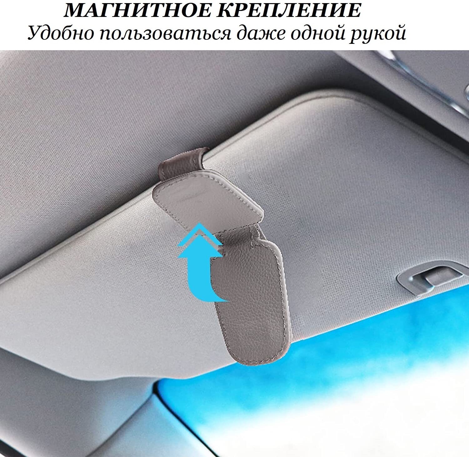 Отзывы на Держатель автомобильный для очков кожаный/крепление для очков в автомобиль/магнитный зажим в машину за козырек TAKIENG серый
