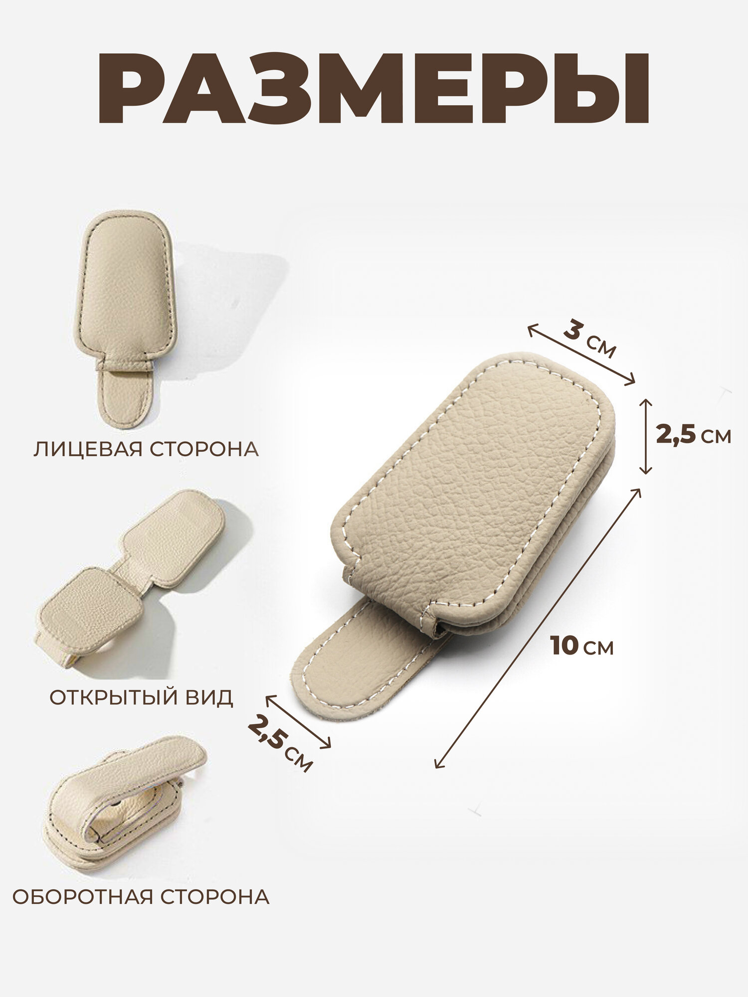 Отзывы на Держатель автомобильный для очков кожаный/крепление для очков в автомобиль/магнитный зажим в машину за козырек TAKIENG бежевый