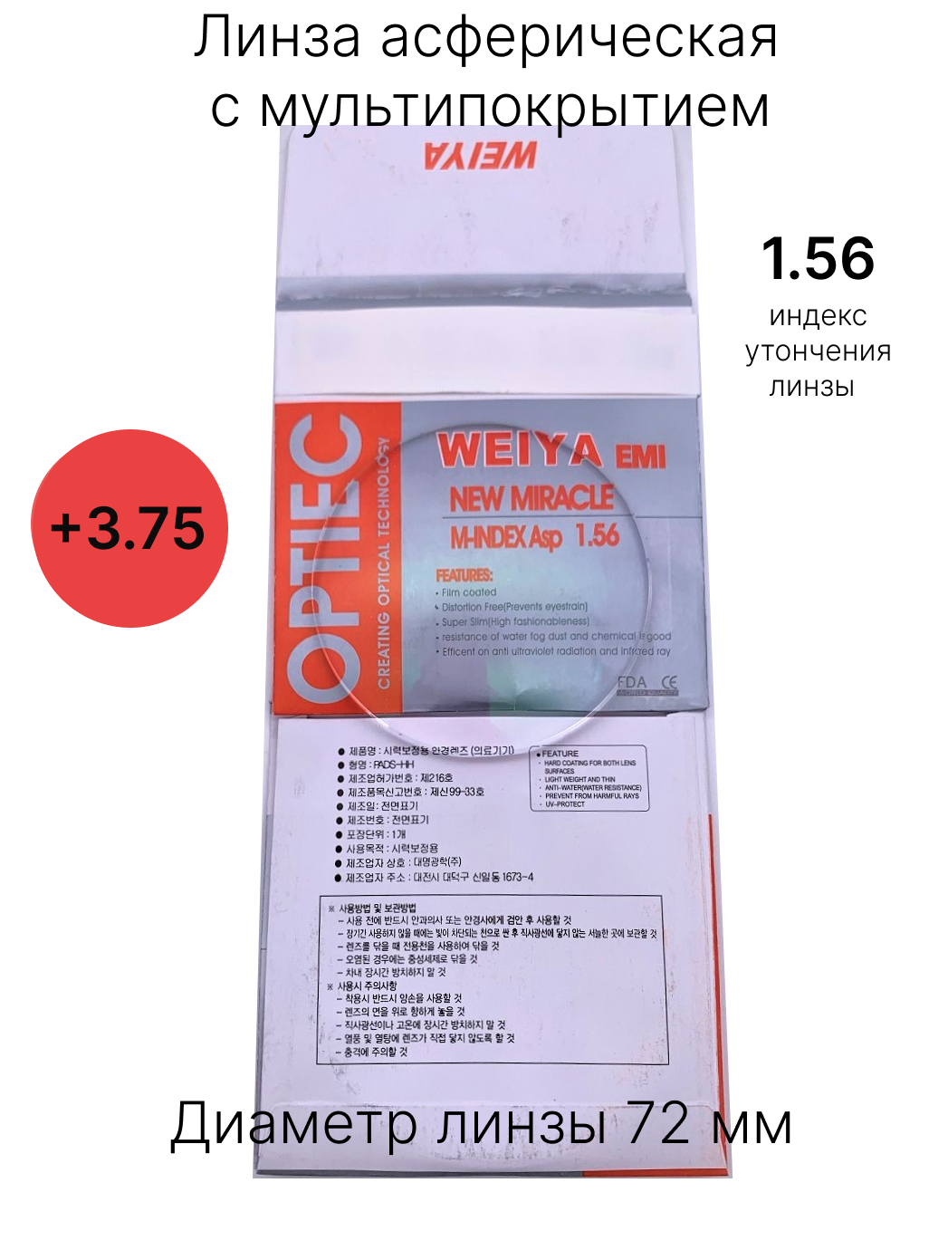 Линзы для очков +3,75 с индексом утончения 1,56 информация: