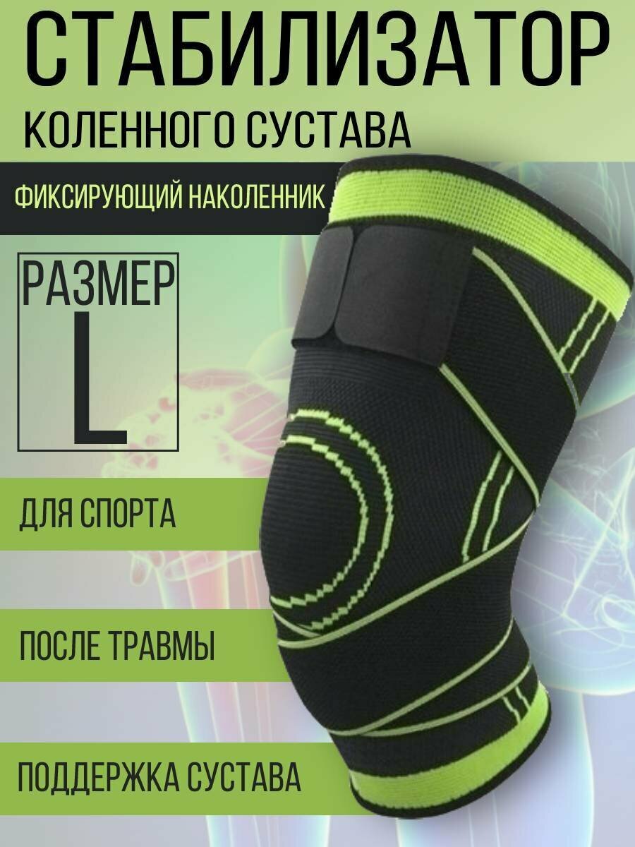 10 цен на Стабилизатор бандаж для колена спортивный, наколенник, ортез на коленный сустав, зеленый, L