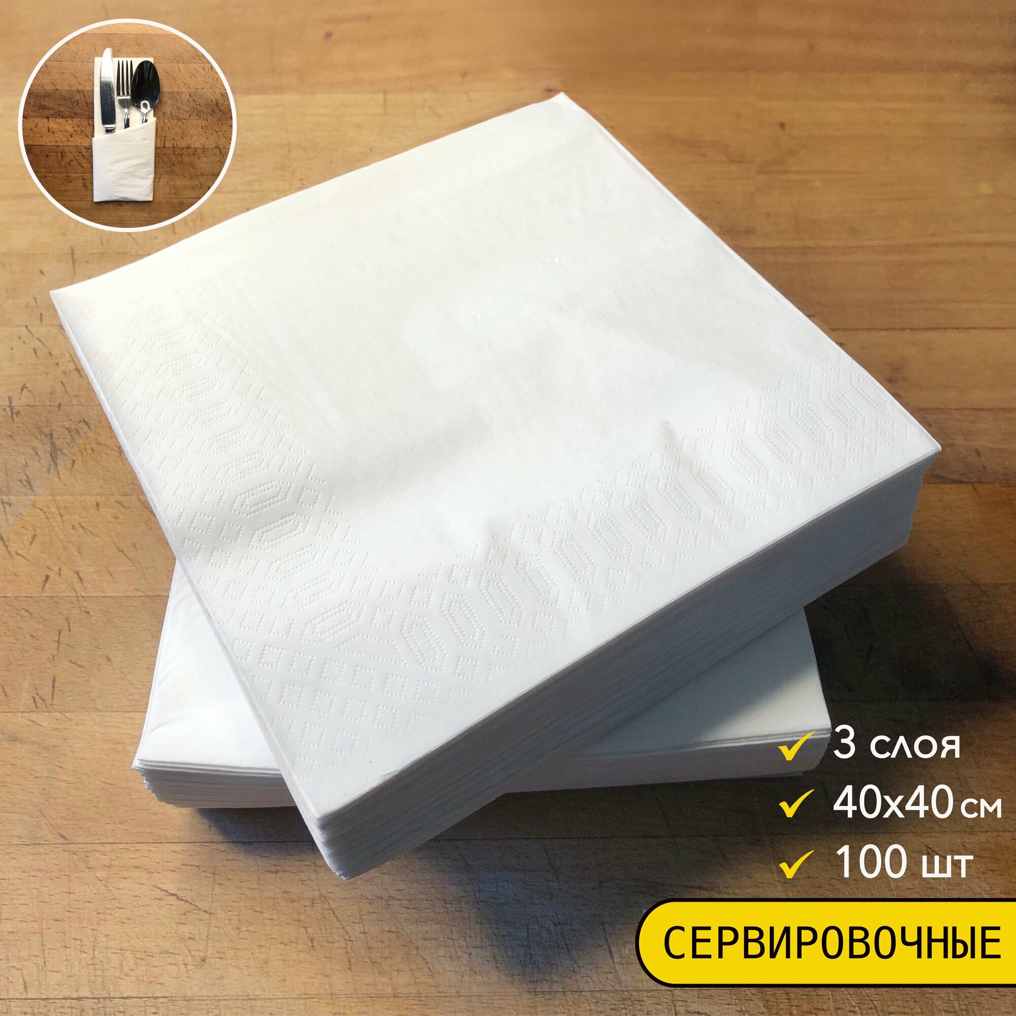Отзывы на Салфетки бумажные трёхслойные для сервировки стола KITCHN, 40*40 см, 100 шт/пачка, сложены 20*20 см, однотонные, белые Premium