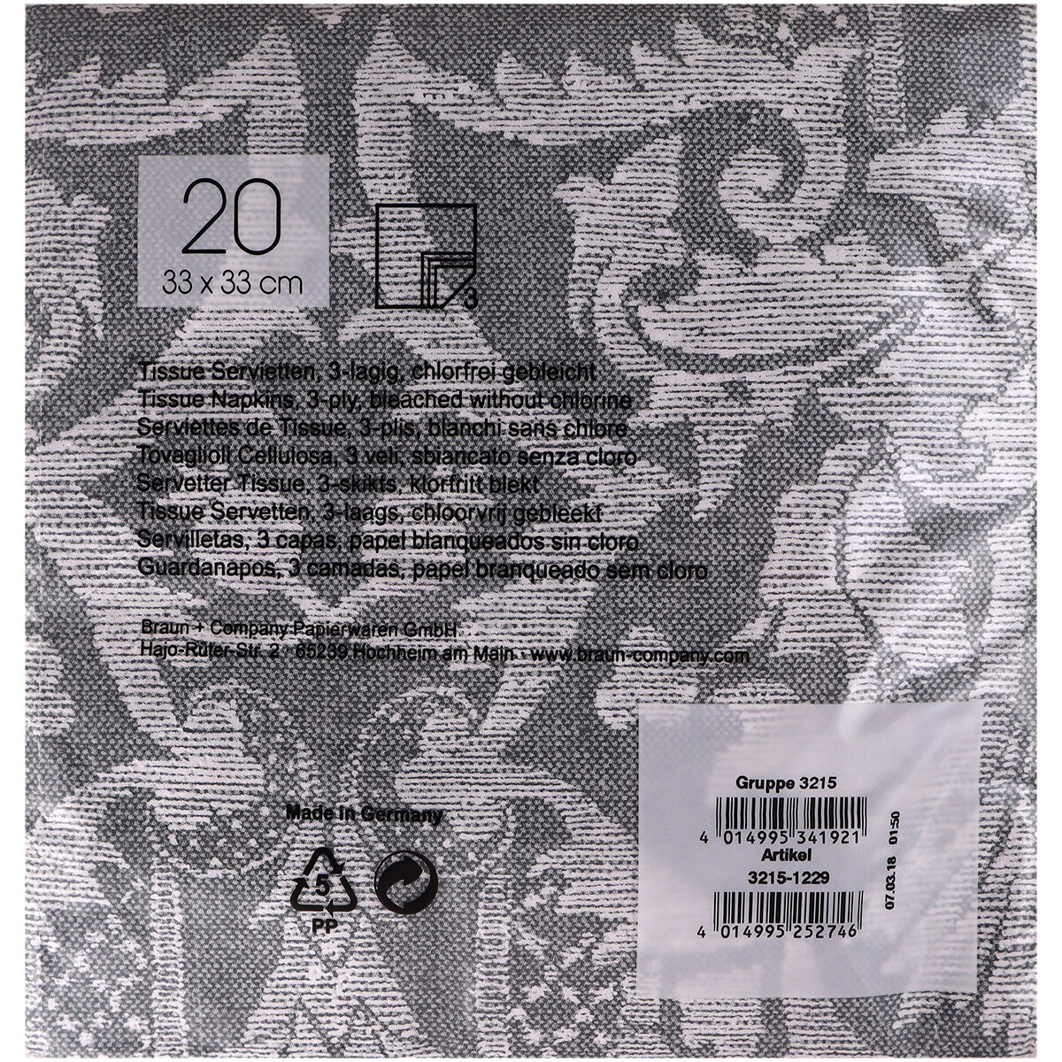 Бумажные салфетки фактурные серые с узором, 3-слойные, 33х33 см. (Германия) информация: