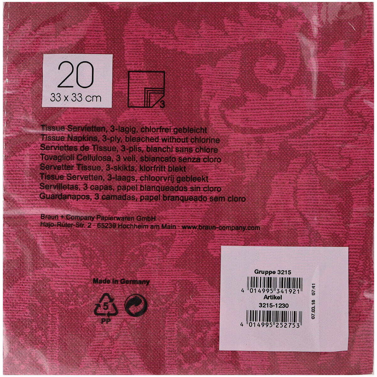 Бумажные салфетки бордовые с узором, 3 слоя, 33х33 см (Германия) информация: