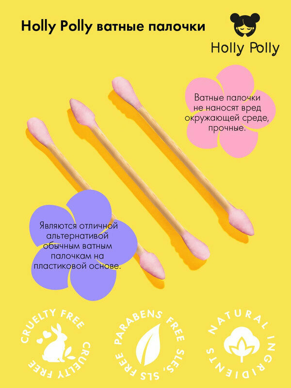 10 цен на Ватные палочки HOLLY POLLY Косметические бамбуковые розовые, 200 шт