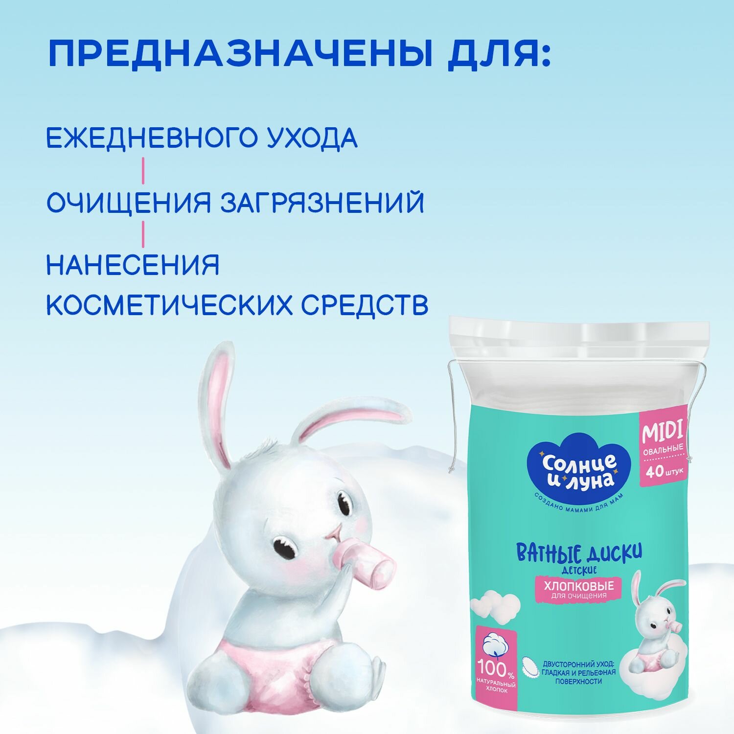 Ватные диски Солнце и луна для детей овальные 40 шт (комплект из 12 шт)
