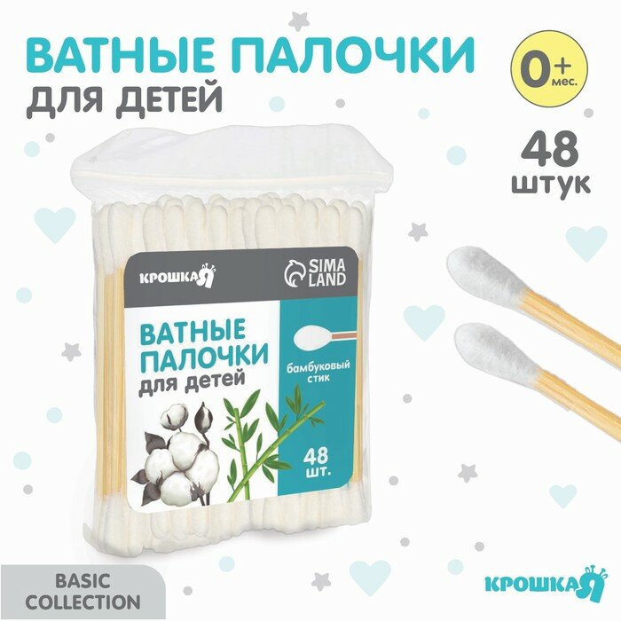 Ватные палочки, пакет 48 шт., наконечник - классика, хлопок/бамбук(стик) информация: