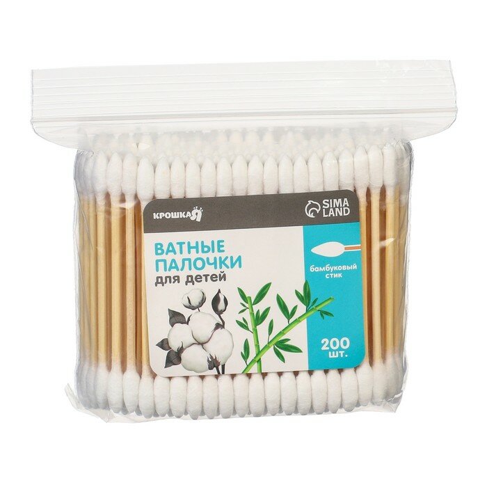 10 цен на Ватные палочки, пакет 200 шт., наконечник - острый, хлопок/бамбук(стик)