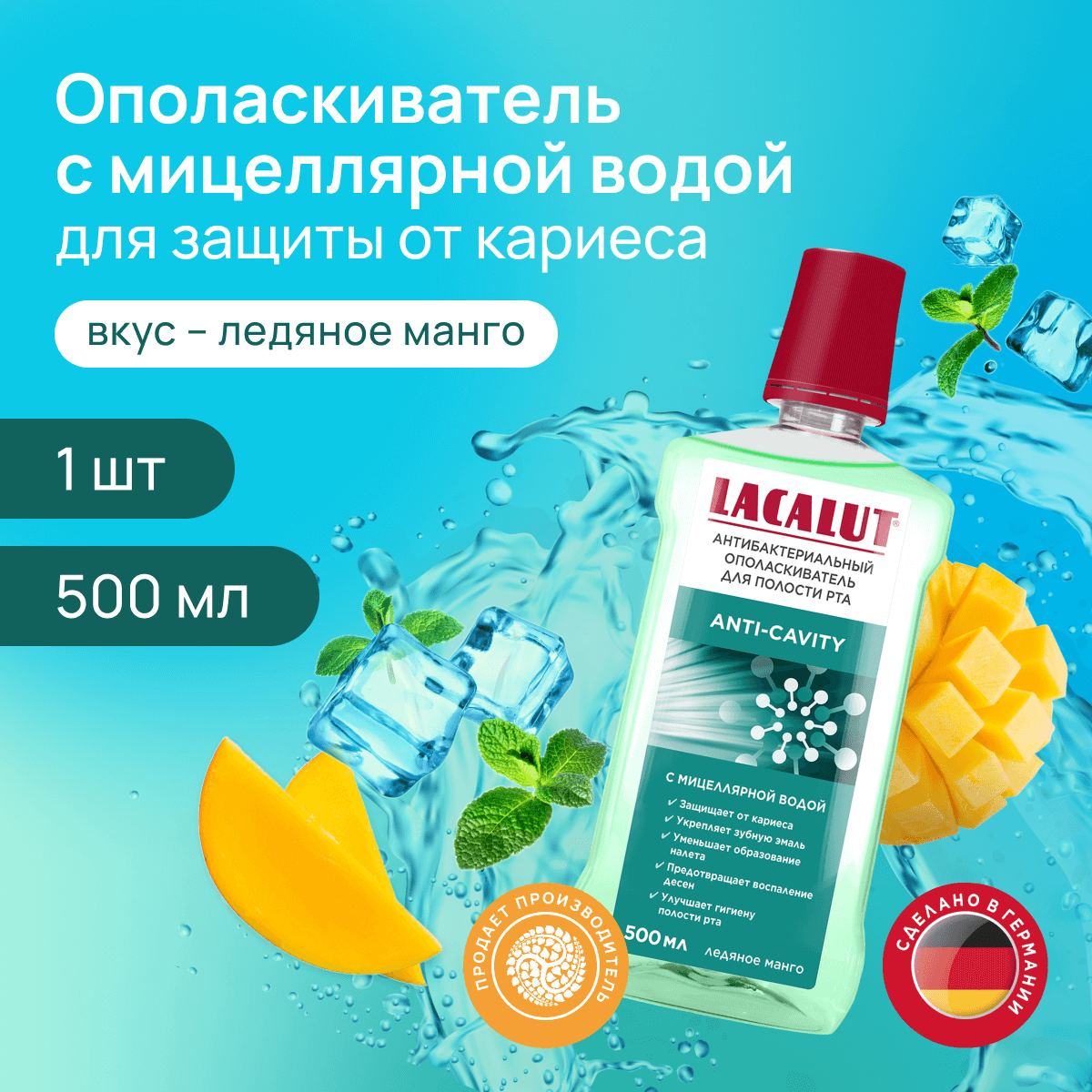 10 цен на LACALUT® anti-cavity антибактериальный ополаскиватель для полости рта, 500 мл