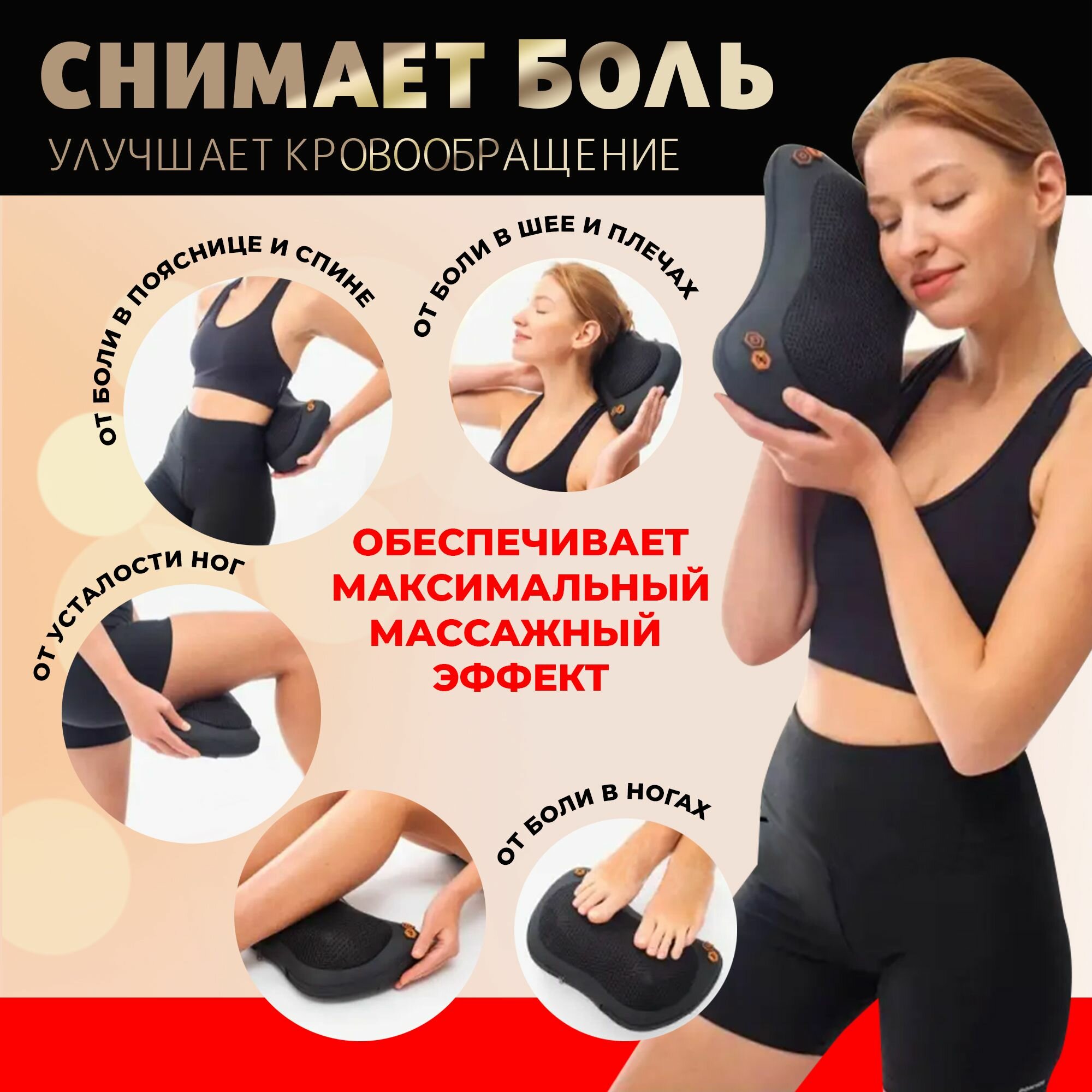 | Подробная комплектация | массажер подушка 16 роликов, зарядный кабель, инструкция |